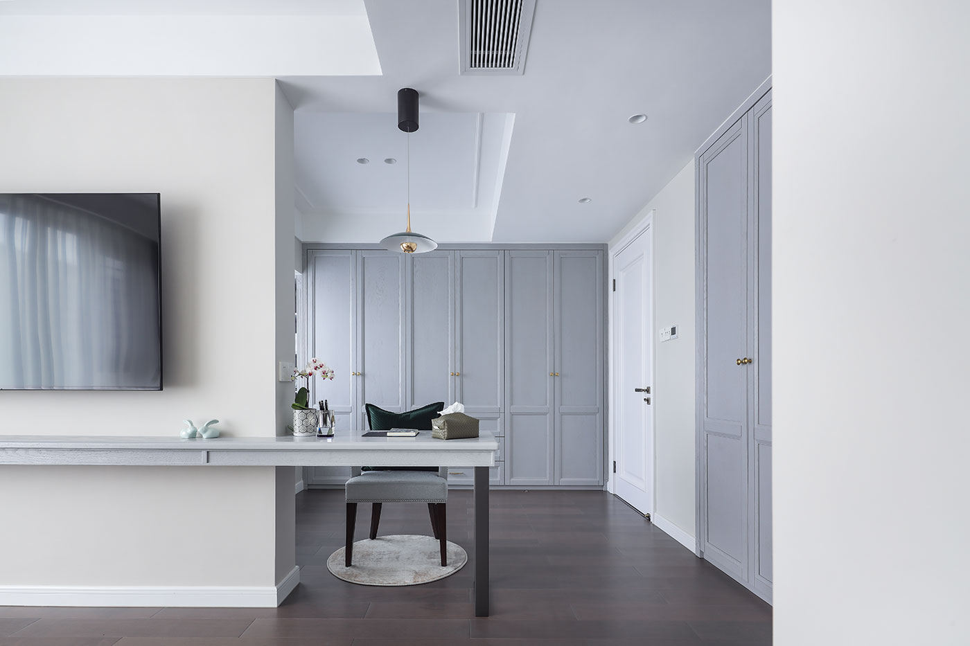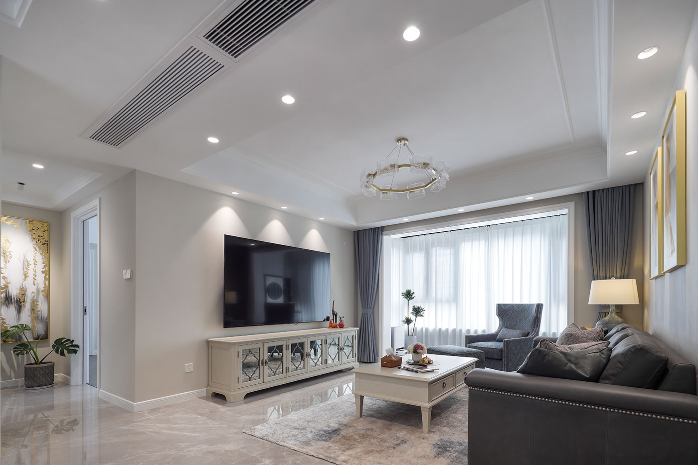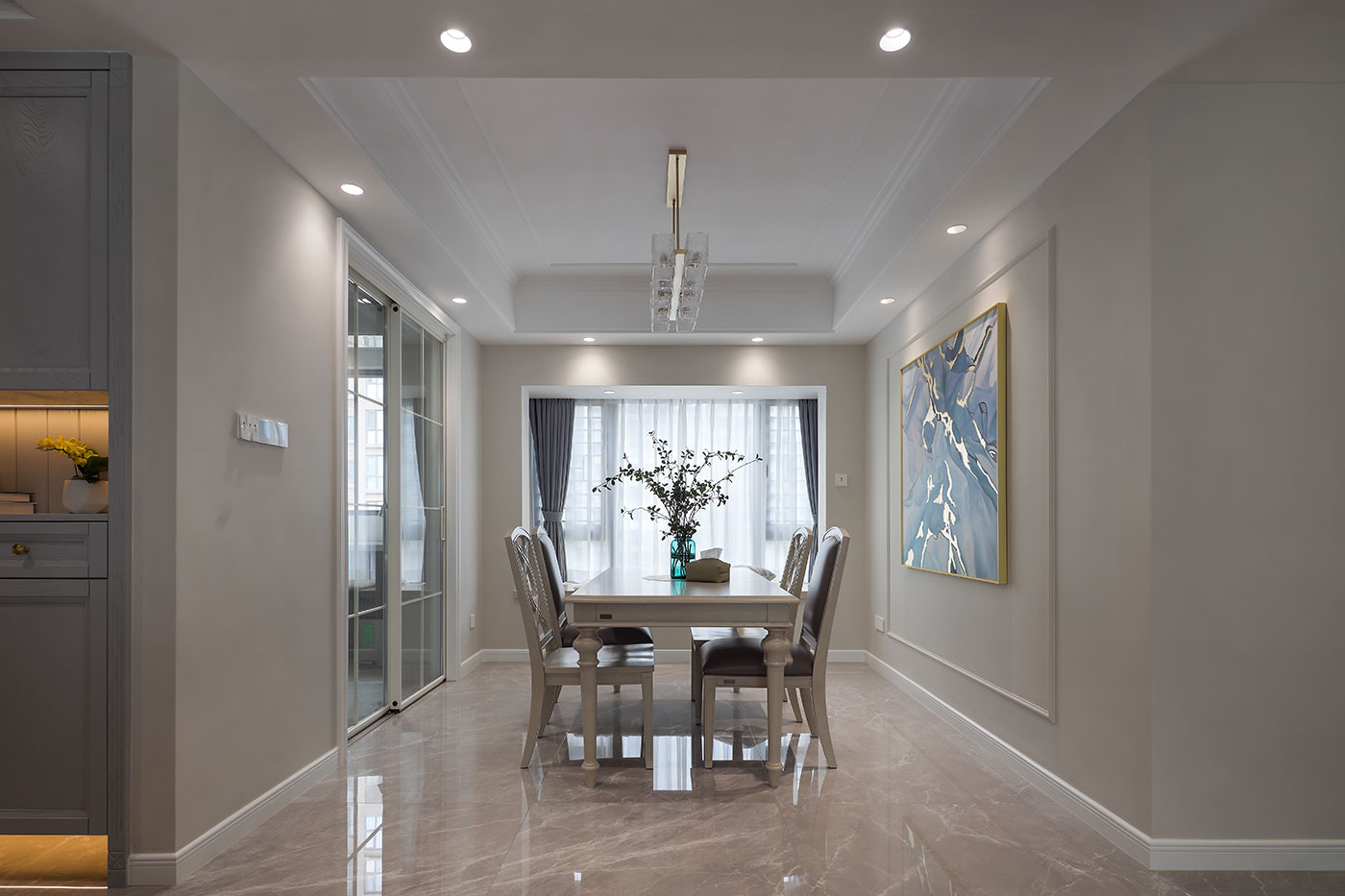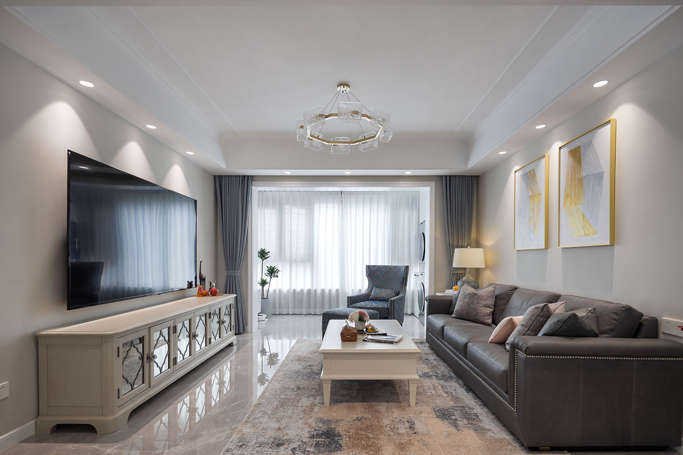本案業(yè)主是一對85后夫妻,常住人口是三口,業(yè)主有一個可愛的女兒,對于空間的風格上,女業(yè)主喜歡美式的復古調,男業(yè)主則是喜歡現(xiàn)代簡約的舒適感。對于二人的需求,設計師將空間風格合二為一,結合一家人的生活習慣??臻g用細膩奶油色編織出的夢幻空間,里面充斥著大地色的溫柔氣息,從色彩搭配、線條設計、家居軟裝等都體現(xiàn)著現(xiàn)代美式的優(yōu)雅與內斂。線條與韻律激發(fā)起人們的美感聯(lián)想,在一體化的大基調中營造秩序感,滌蕩出美的生活方式。