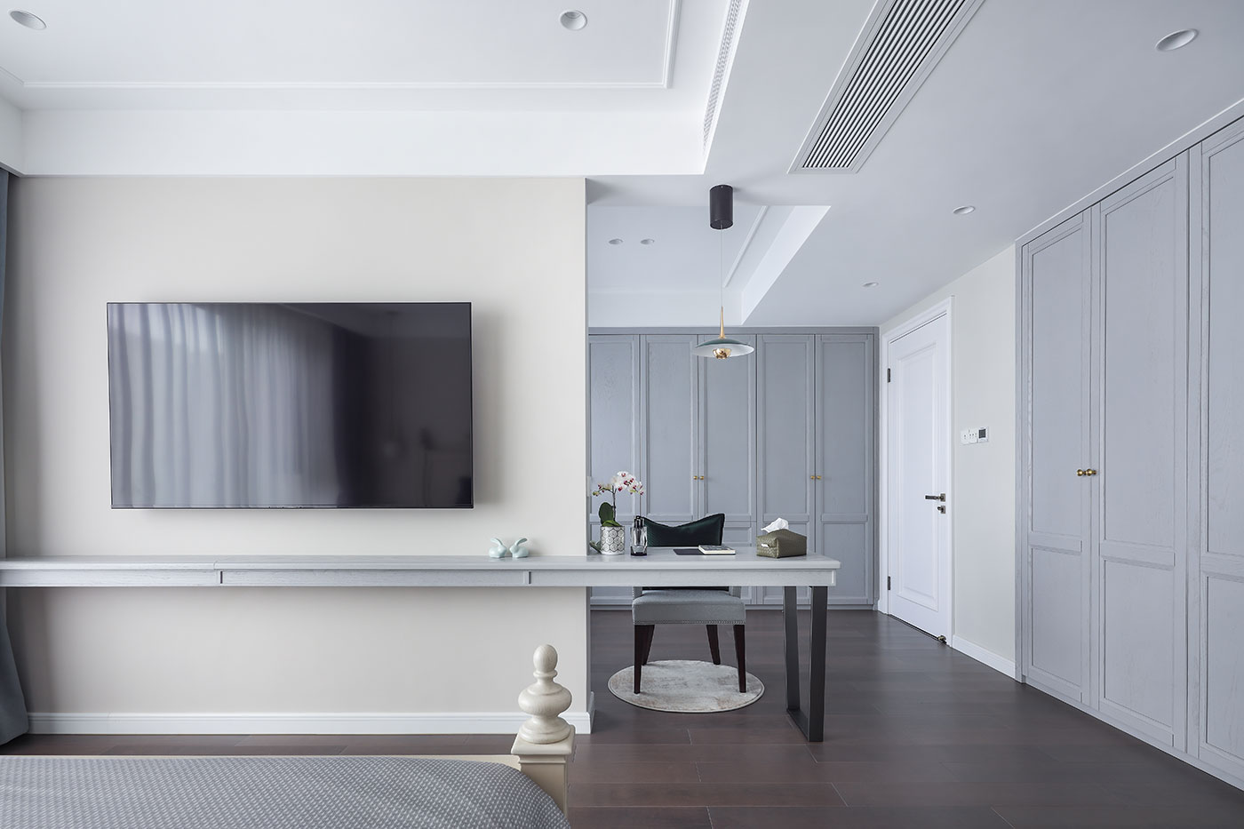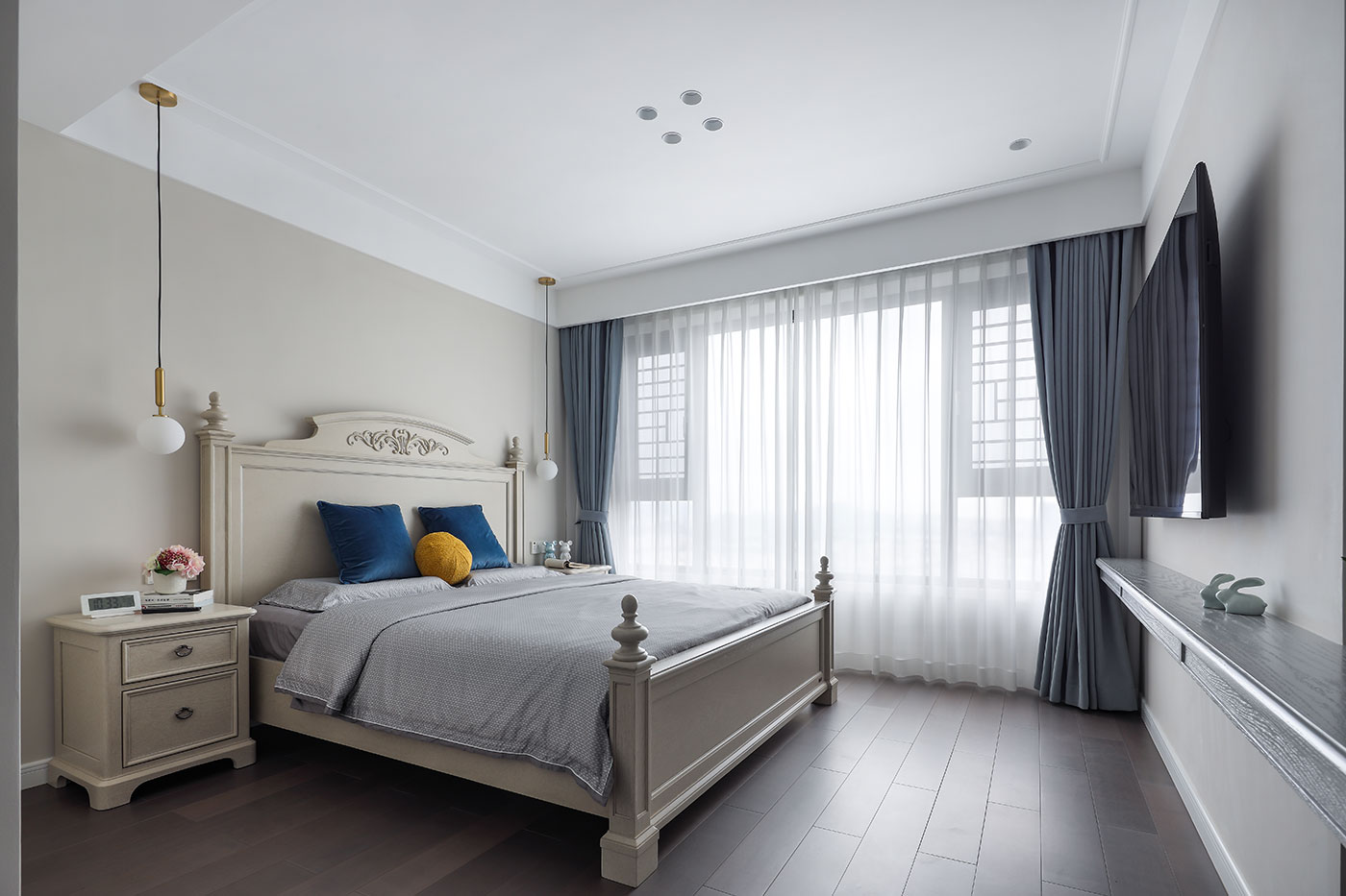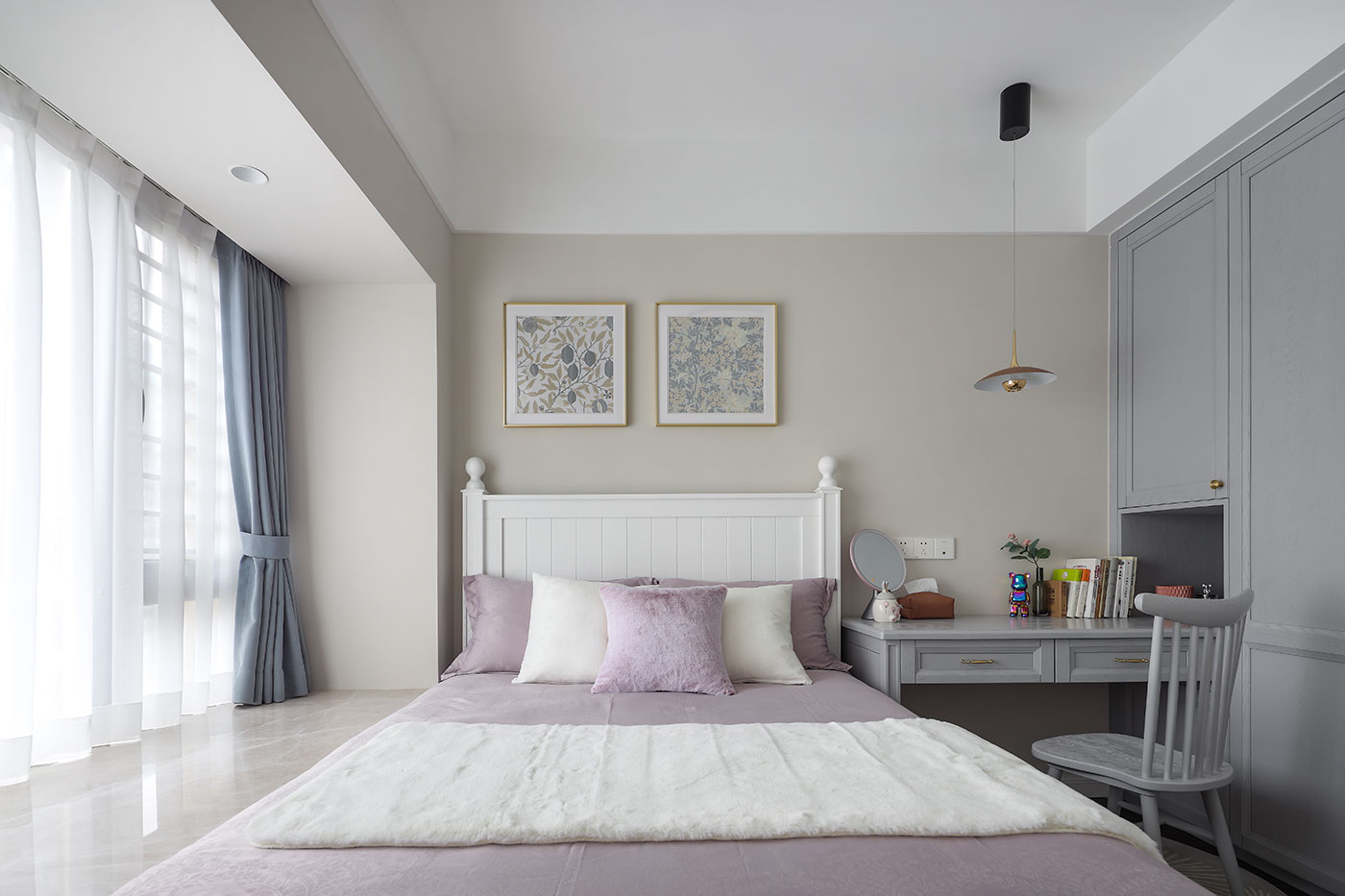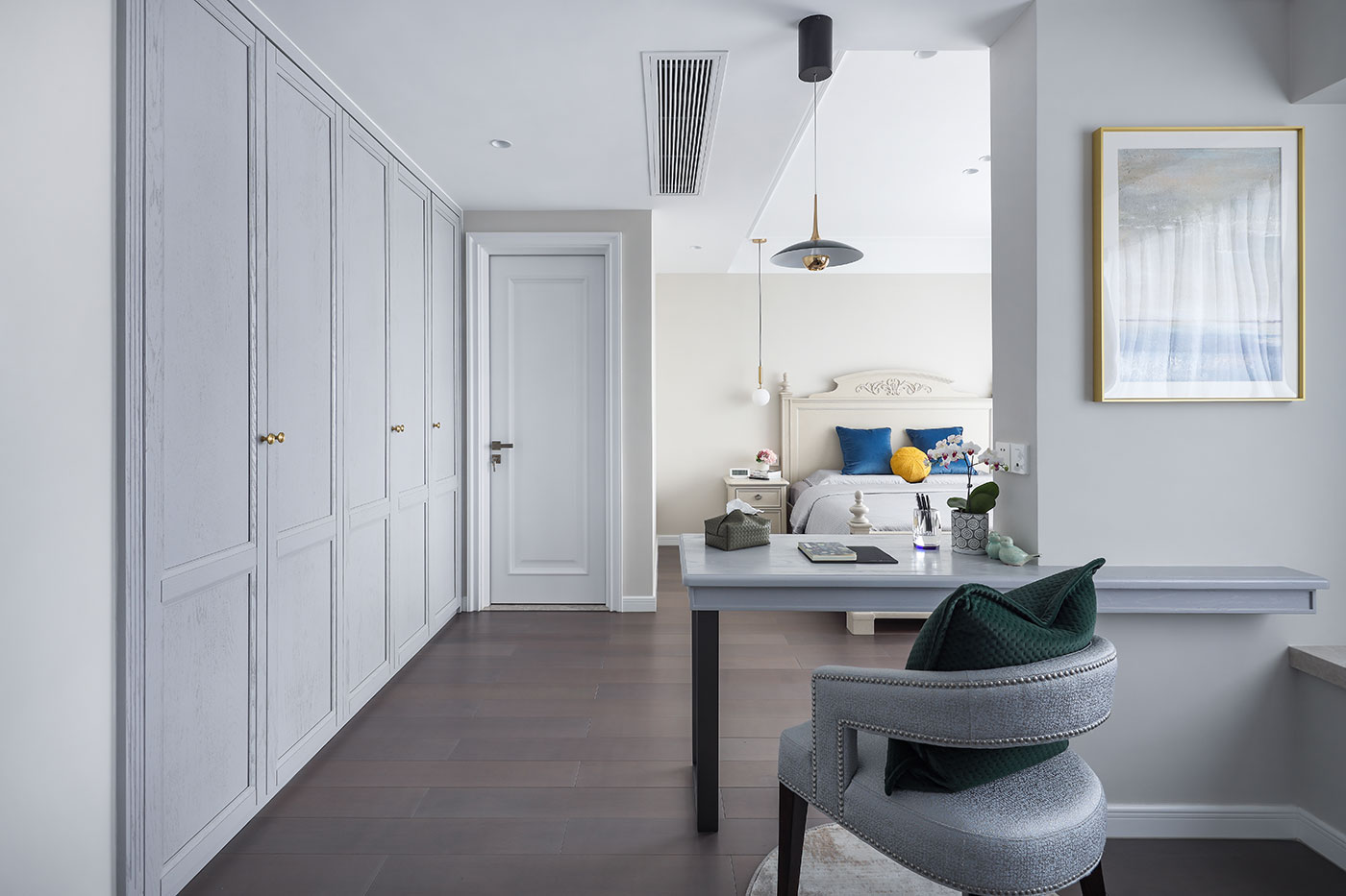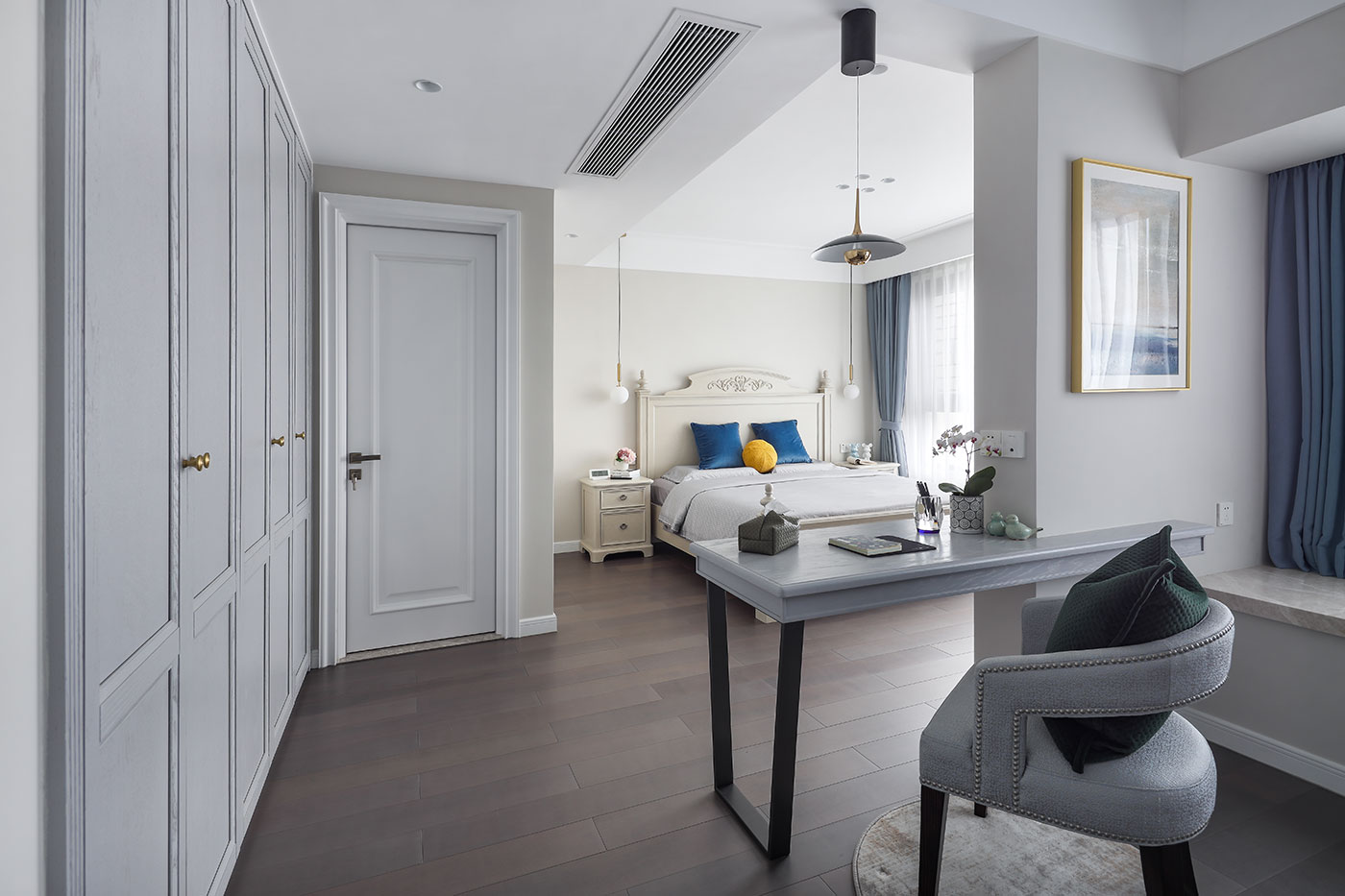 本案業(yè)主是一對85后夫妻,常住人口是三口,業(yè)主有一個可愛的女兒,對于空間的風格上,女業(yè)主喜歡美式的復古調,男業(yè)主則是喜歡現(xiàn)代簡約的舒適感。對于二人的需求,設計師將空間風格合二為一,結合一家人的生活習慣??臻g用細膩奶油色編織出的夢幻空間,里面充斥著大地色的溫柔氣息,從色彩搭配、線條設計、家居軟裝等都體現(xiàn)著現(xiàn)代美式的優(yōu)雅與內斂。線條與韻律激發(fā)起人們的美感聯(lián)想,在一體化的大基調中營造秩序感,滌蕩出美的生活方式。