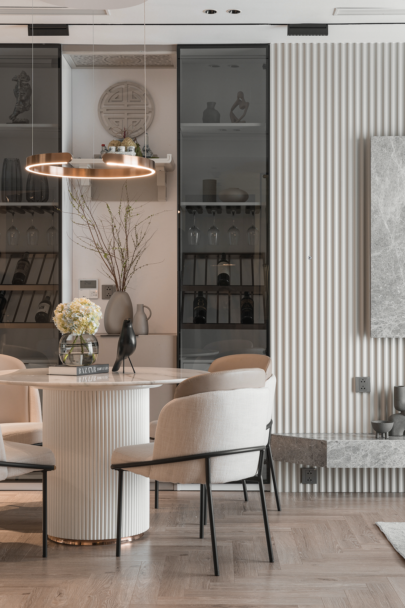 1、空間定位為業(yè)主喜歡的現(xiàn)代簡約風(fēng),客廳餐廳納入一個空間,保證整體的采光性,