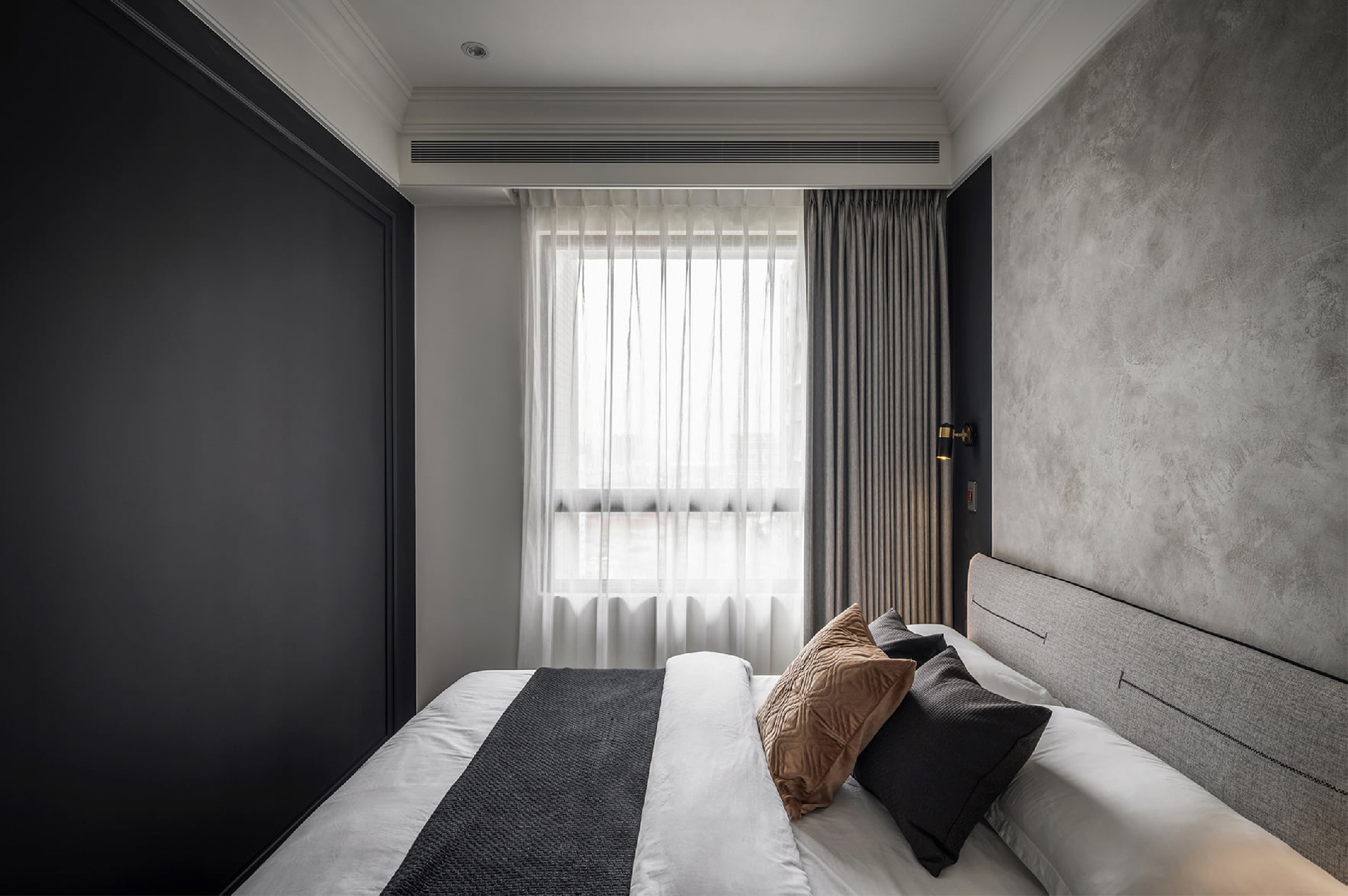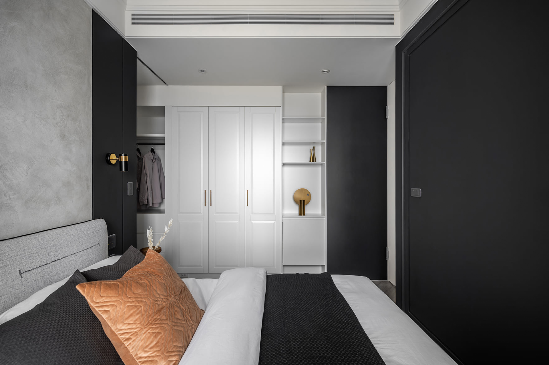 4. 縱線高挑簡(jiǎn)約門設(shè)計(jì)將臥室完美“隱藏”,營(yíng)造出豐富的空間層次感