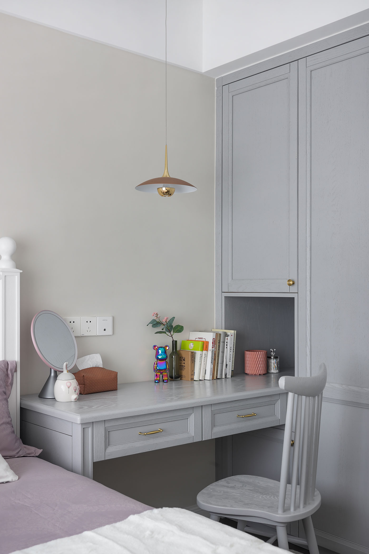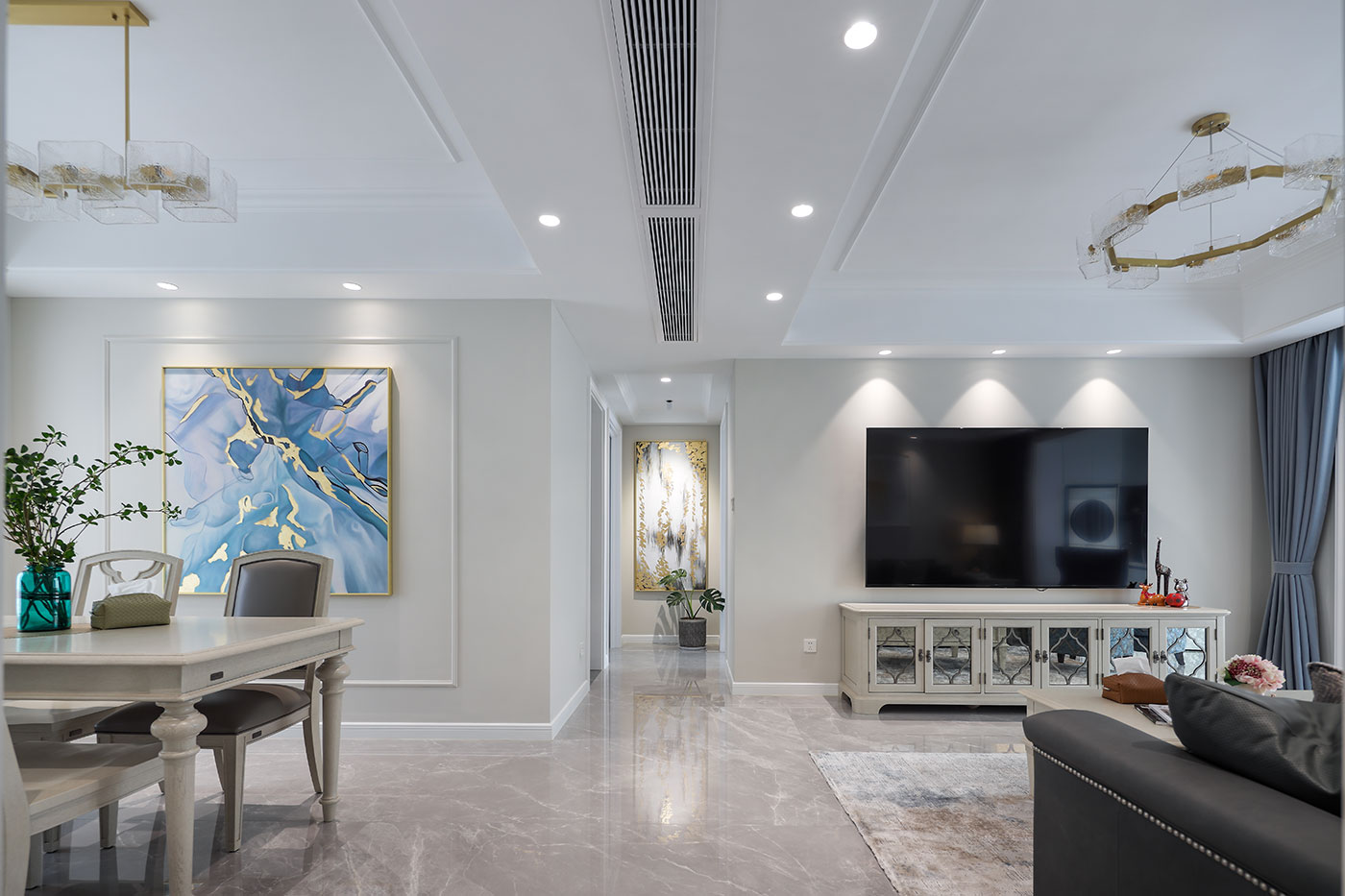 本案業(yè)主是一對85后夫妻,常住人口是三口,業(yè)主有一個可愛的女兒,對于空間的風格上,女業(yè)主喜歡美式的復古調,男業(yè)主則是喜歡現(xiàn)代簡約的舒適感。對于二人的需求,設計師將空間風格合二為一,結合一家人的生活習慣??臻g用細膩奶油色編織出的夢幻空間,里面充斥著大地色的溫柔氣息,從色彩搭配、線條設計、家居軟裝等都體現(xiàn)著現(xiàn)代美式的優(yōu)雅與內斂。線條與韻律激發(fā)起人們的美感聯(lián)想,在一體化的大基調中營造秩序感,滌蕩出美的生活方式。