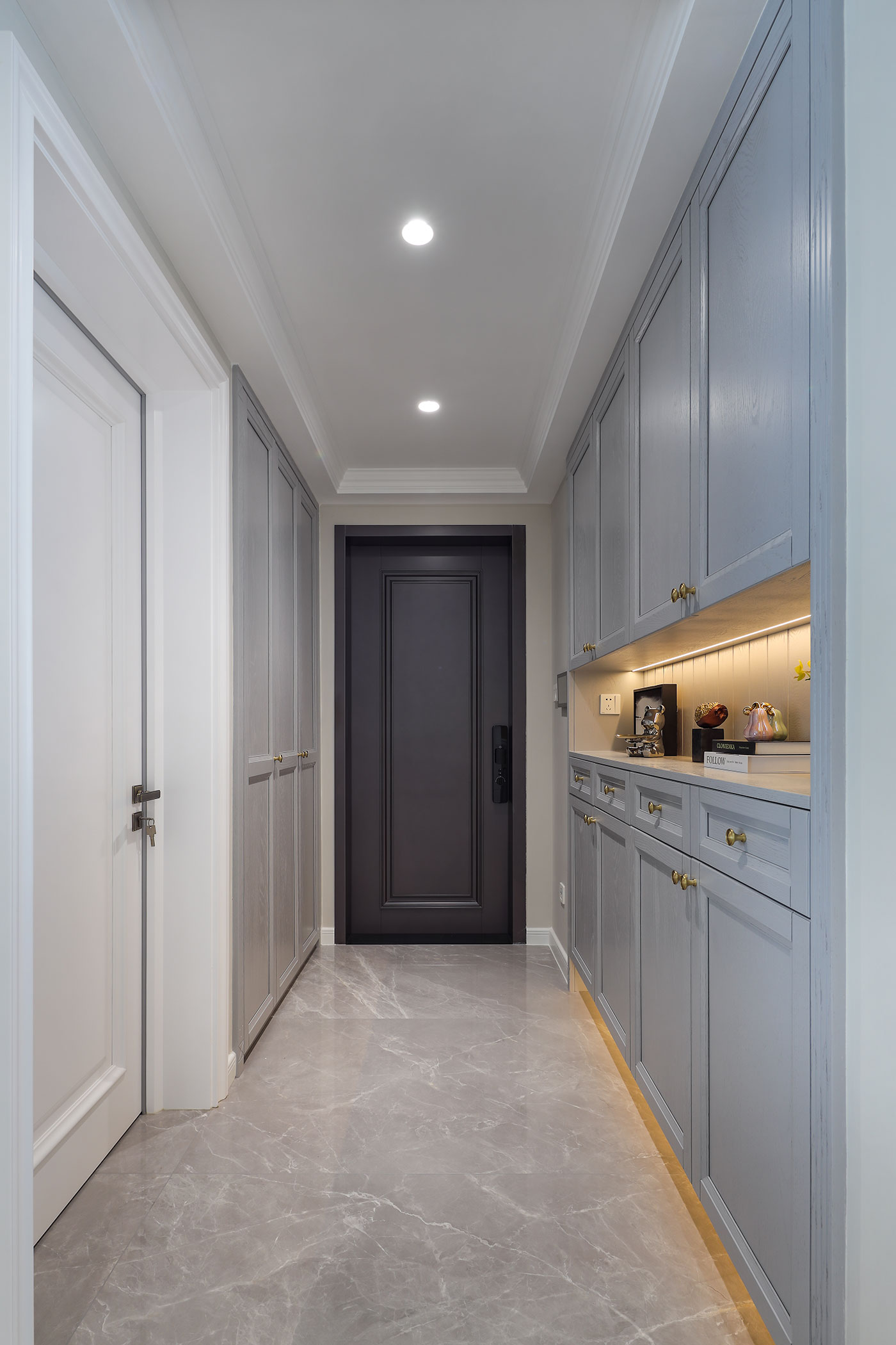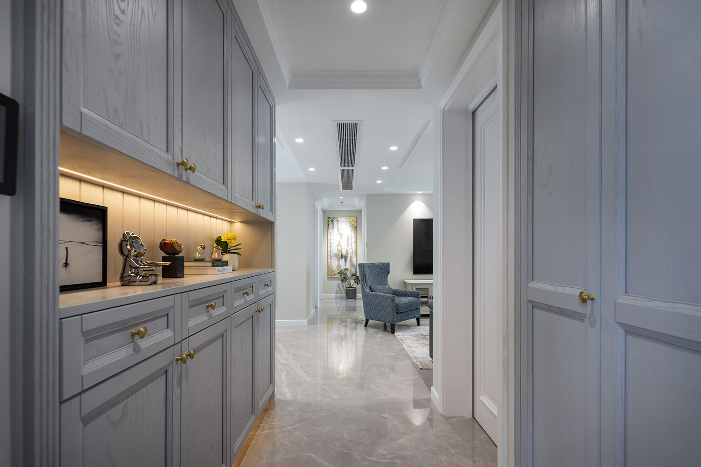 2、靠近客廳的次臥墻體拆改,擴大走廊空間,墻體內移動增加收納柜。