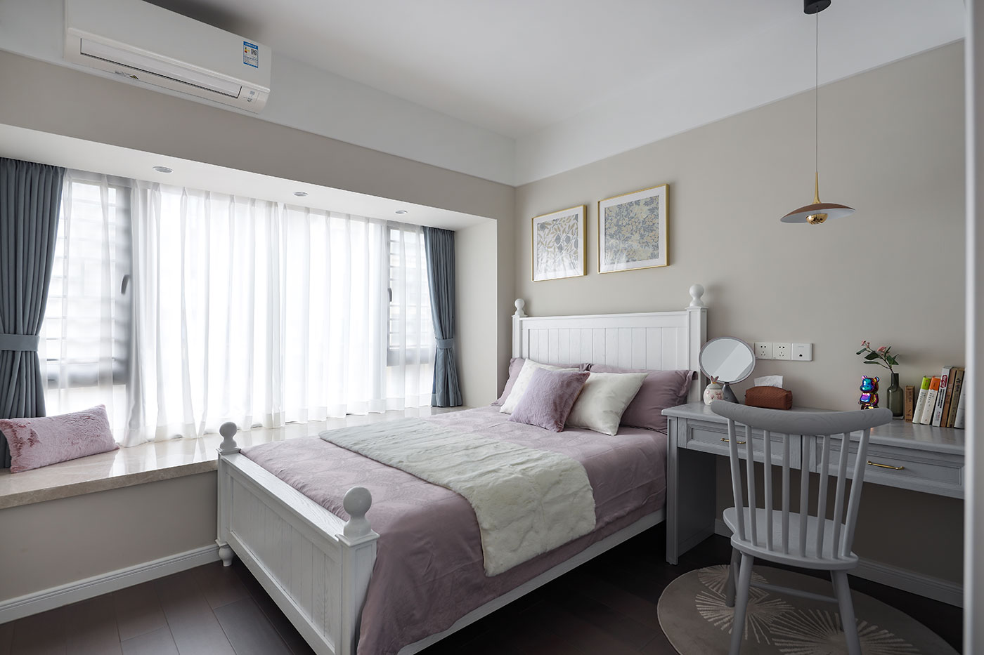 4、原始戶型的主臥和緊靠的小次臥墻體拆改,兩個空間改為一個大套間,提升業(yè)主的生活質量。